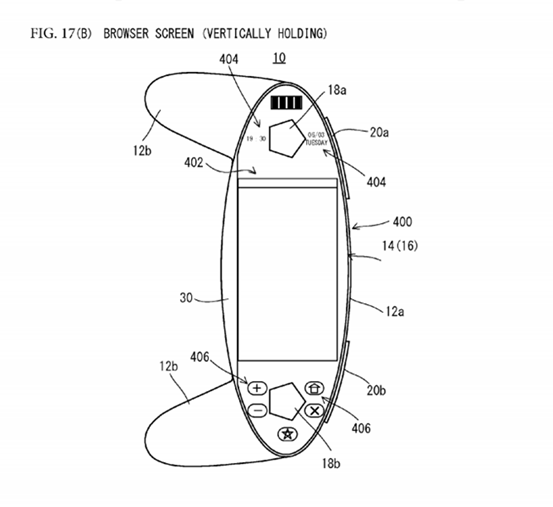 當然,你可能會覺得這就是WiiU的一個增強設計,畢竟WiiU的手柄上也有塊螢幕,這樣的猜測也不是沒有可能。不過從專利書中來看,這個“手柄”內置高性能處理器和無線網卡,可以獨立玩遊戲的同時還能與網路連接下載應用,使用Web流覽器(此時手柄需要豎過來使用)。所以比起手柄,掌機或主機的可能性很大。
