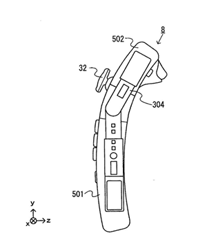 2015年12月,任天堂向美國專利商標局提交的一項專利公開,表面上看的話,這就是僅有一對肩鍵和一對類比搖杆的手柄,除此以外再也沒有其他按鍵了。而且類比搖杆被設計為五向控制,兩側的抓握部分是很常見的手柄設計。