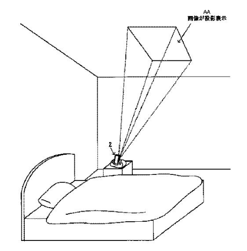 從圖片上來看,這個設備是與手機一同使用的,並且在設備上方有一個投影裝置。在用戶醒來之後,可以直接看到投射在天花板上的預設圖像。
