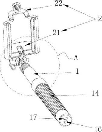 另一方面,我們在外出攜帶自拍幹時,希望它越小越好。為了節省了自拍杆所佔用的空間,更方便攜帶,源德盛自拍杆在加持手機部件的上下兩部分分別設置了一個折彎部和一個缺口,使得伸縮杆折疊後恰好能夠收納於缺口(下圖21)和折彎部(下圖22),這樣就大大節省了收納空間。是不是很巧妙?